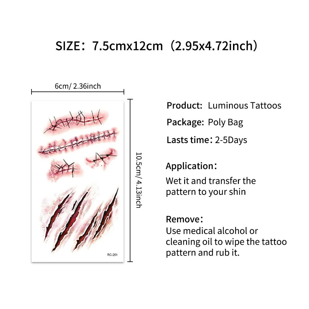24Sheets Halloween 3D Fake Scar Temporary Tattoos for Adutls, Horror Fake Tattoos Fake Bloody Wound Temporary Zombie Tattoos For