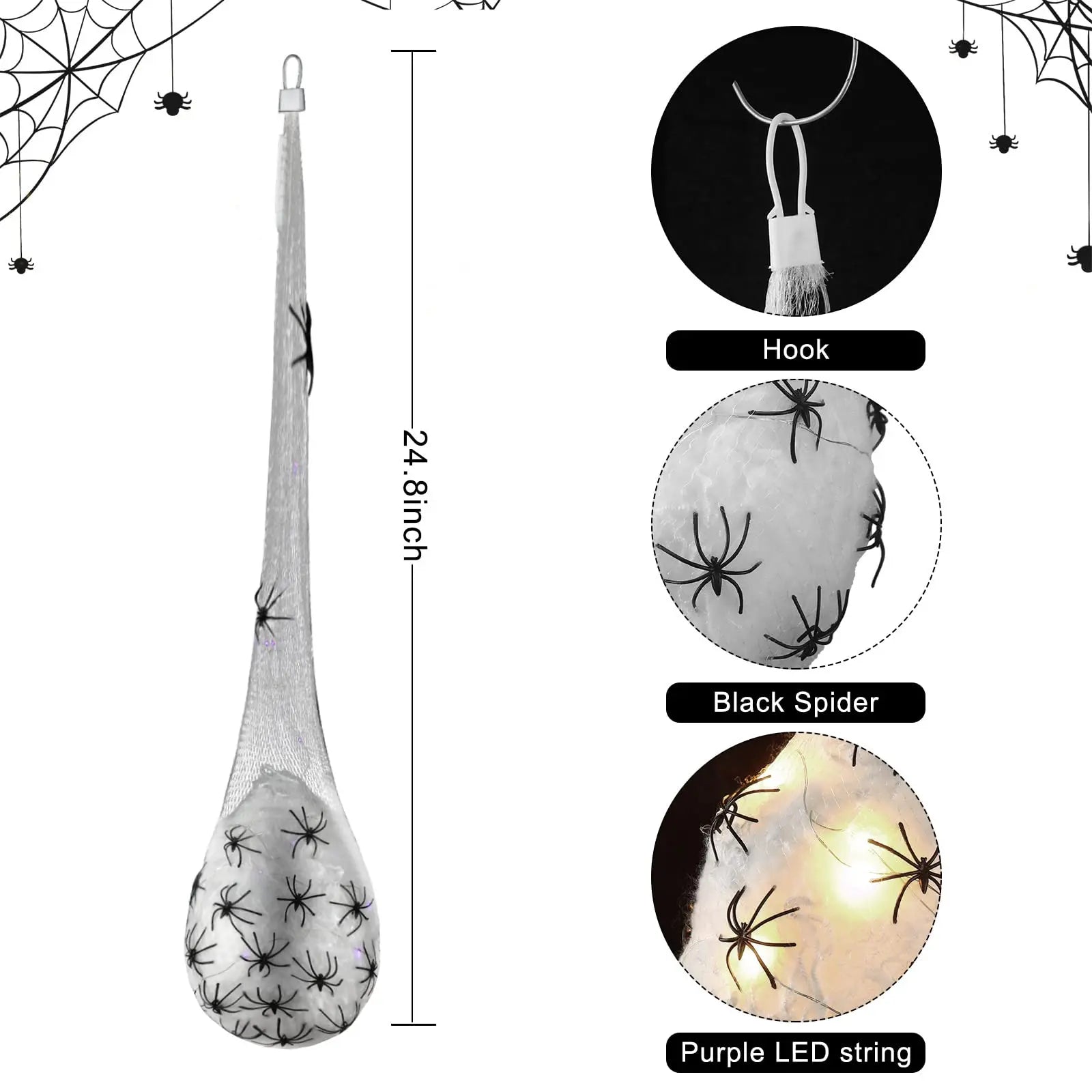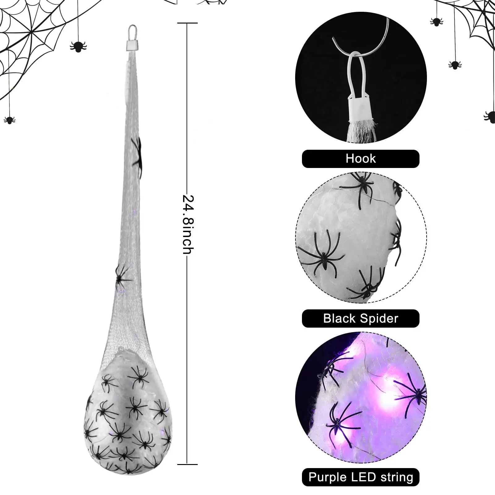 Halloween Hanging Spider Egg Sacs with Lights, Realistic Spiders Haunted House Props for Indoor Outdoor Halloween Party Decor