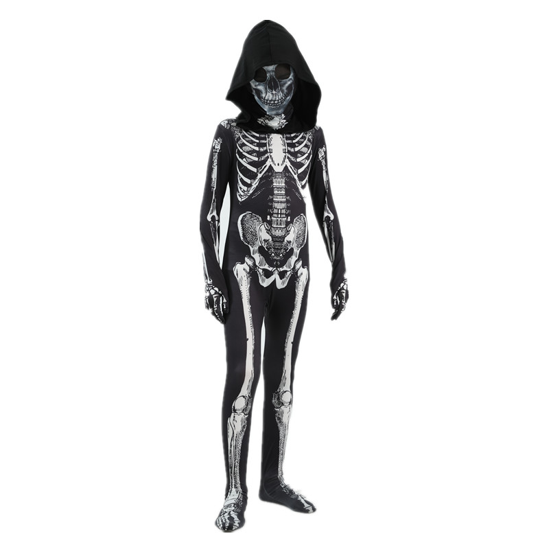 Skeleton Costume includes One Jumpsuit w/ Hood+Spider Scar Sticker