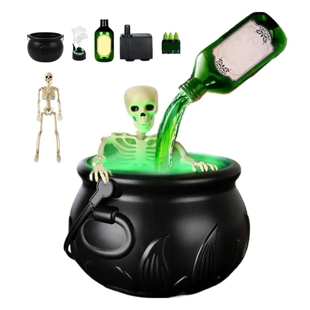 Witch Bowl Spooky Witch Mist Maker Floating Bottle Black Plastic Cauldron & Skeleton Decor LED